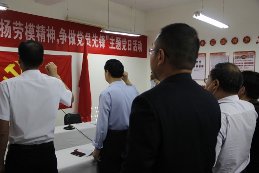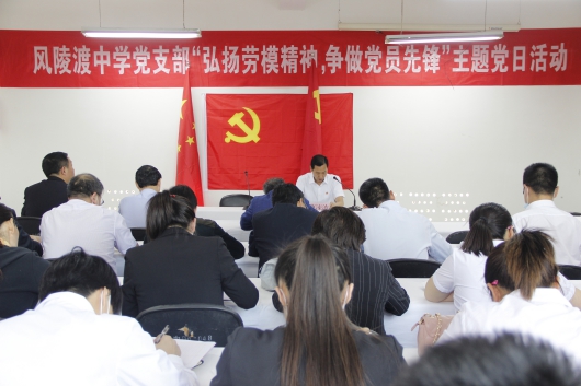 5月6日下午,风陵渡中学党支部在立德楼党员活动室举办“弘扬劳模精神·争做党员先锋”主题党日活动。参会党员在组织委员陈建林带领下重温入党誓词,在支部委员刘俊文带领下诵读《党章》第一章第三、四条。各党小组组织研学习近平总书记在4月17日中央政治局会议上的重要讲话,在陕西、浙江考察时的重要讲话,以及市、县“两会”精神。党员代表朱军峰、常志玲、张磊在大会上交流发言。活动还进行了民主议事、党务公开等程序。全体党员、发展对象、入党积极分子40余人参加活动。党支部书记、校长曹涑波上专题党课并主持活动。