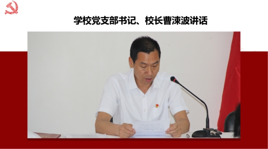 党支部书记曹涑波强调,全体党员要不断增强入党的光荣感和责任感,坚定理想信念,把为师生群众服务的宗旨牢记于心;全校上下要把学习好、宣传好、贯彻好全国“两会”精神作为当前和今后一个时期的重要政治任务,自觉增强“四个意识”,坚定“四个自信”,做到“两个维护”;全体教职员工要加大学习强国的学习力度,贯彻新发展理念,不断提高工作能力,强化育人本领,以优异的教育教学成绩向关心风中发展的社会各界交一份满意的答卷。