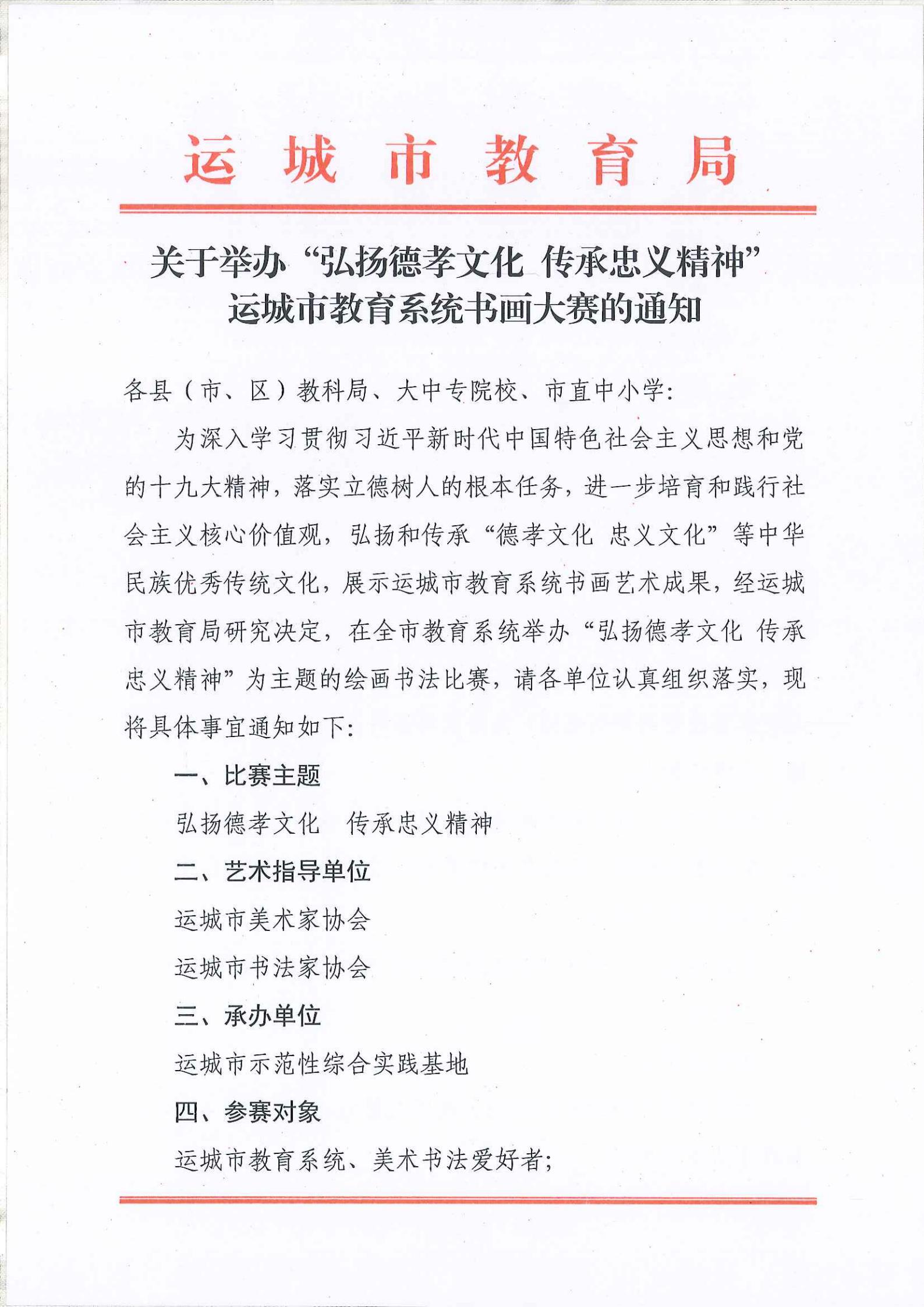 关于举办“弘扬德孝文化 传承忠义精神”运城市教育系统书画大赛的通知