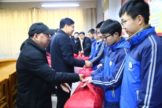 曹涑波校长代表风陵渡中学感谢开发区管委会、关工委、商会的各位爱心人士对我校留守学生的牵挂和关爱,表示一定践行 “办好一方教育,服务一方百姓,成就一代孩子”的郑重承诺,以高度负责的态度支持开发区的建设与发展。王文红书记希望同学们将这些棉被转交给照顾他们生活的爷爷奶奶,并通过同学们转达对老人家的感谢。