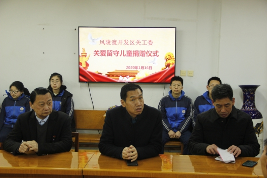 1月16日上午,风陵渡开发区管委会、关工委、商会一行10人慰问风陵渡中学高三年级留守学生。风陵渡开发区党工委副书记、纪工委书记王文红介绍开发区运行情况、关工委组建情况和本次活动的目的。风陵渡中学党支部书记、校长曹涑波致答谢辞,并介绍高三年级寒假考试的优异成绩。开发区关工委向高三年级留守学生赠送了爱心礼物。