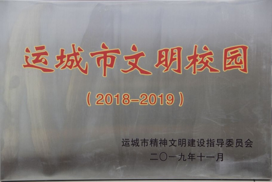 近日,运城市精神文明建设指导委员会下发《关于运城市第二届文明校园命名表彰的决定》,我校被命名表彰为“运城市2018-2019年度文明校园”。