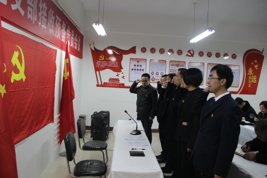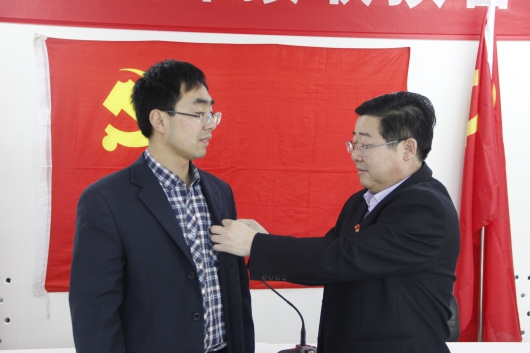 支部委员为新党员佩戴党徽