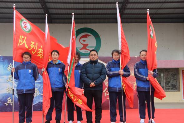副校长王建军校长宣读本学期学习标兵班级、对抗标兵班级、卫生标兵班级、内务标兵班级、队列标兵班级,组织了旗帜交接仪式并宣布守旗班级和夺旗班级。