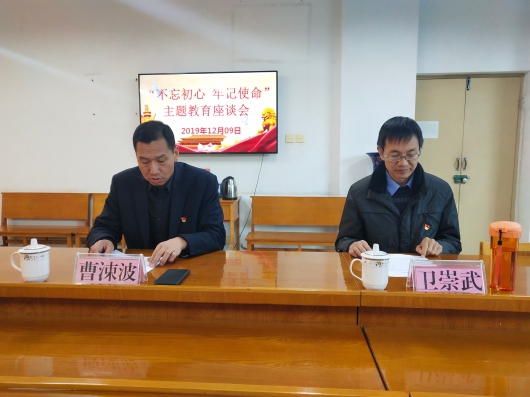 根据主题教育工作安排,12月9日下午,市委第七巡回指导组组织开展风陵渡中学“两代表一委员”、基层党员群众代表、服务对象座谈会,并对全市“不忘初心、牢记使命”主题教育情况进行测评。学校领导班子成员、市委第七巡回指导组成员卫崇武参加座谈会,风陵渡中学党支部书记、校长曹涑波主持会议。会议共有三项议程:市委第七巡回指导组成员简要通报全市主题教育开展情况;与会同志交流发言;与会人员开展测评。