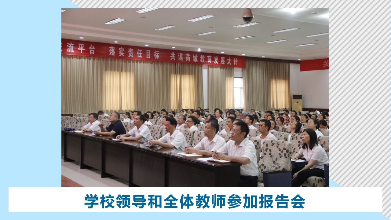 我校党支部书记、校长曹涑波一再感谢田老师接受邀请,来我校传经送宝。他说,田老师的报告必将开阔我校教师的眼界,促使教师不断优化教学方法和策略,提高课堂教针对性,促进学校内涵式发展。田老师的报告是我校“请进来、走出去”活动的重要内容。这场报告也拉开了全校教师充电学习、暑期培训的序幕。