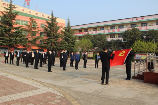早上8:00,学校疫情防控领导小组组长、党支部书记、校长曹涑波带领全体党员在名人广场重温入党誓词,号召全体党员、干部发挥模范带头作用,勇挑高三教学重担,做好高三服务工作,希望大家牢记教育初心、践行教师使命、争当优秀党员。