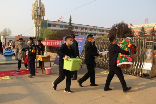 上午8:30,高三开学工作人员、“1+5”单位工作人员按时上岗,迎接来自四面八方的高三学子。等候区、消毒区、行李搬运区、体温测量、验查健康证明等岗位工作人员各司其职。4条通道内,学生间隔1米,有序进入校园。 校领导、包班干部、普通教师、行政后勤人员纷纷加入帮助同学们搬运行李的行列,加快了学生进入校园、入住宿舍的速度,将爱心和风中温度传递给每一位学生和家长。