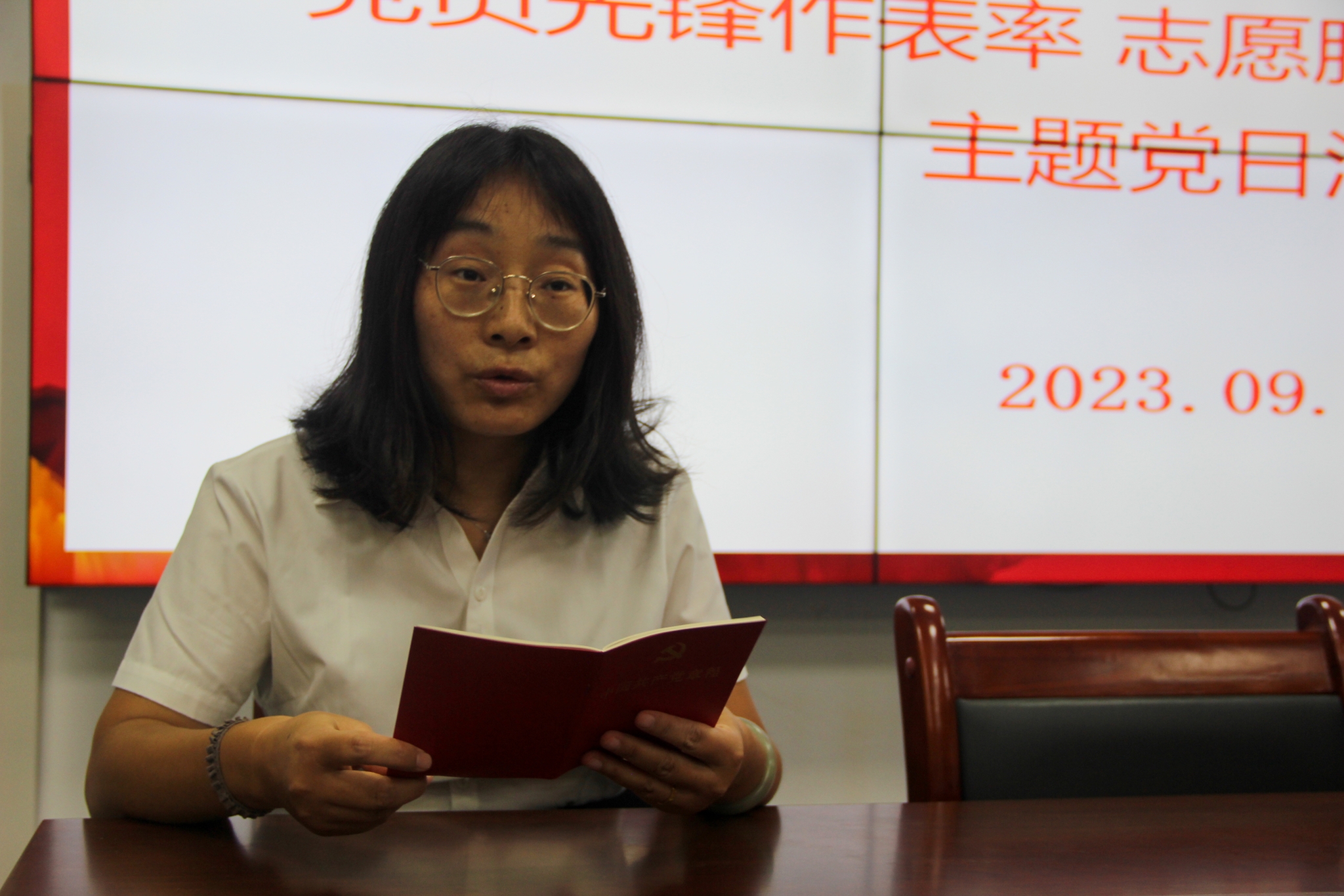 崔海燕同志带领全体党员诵读党章